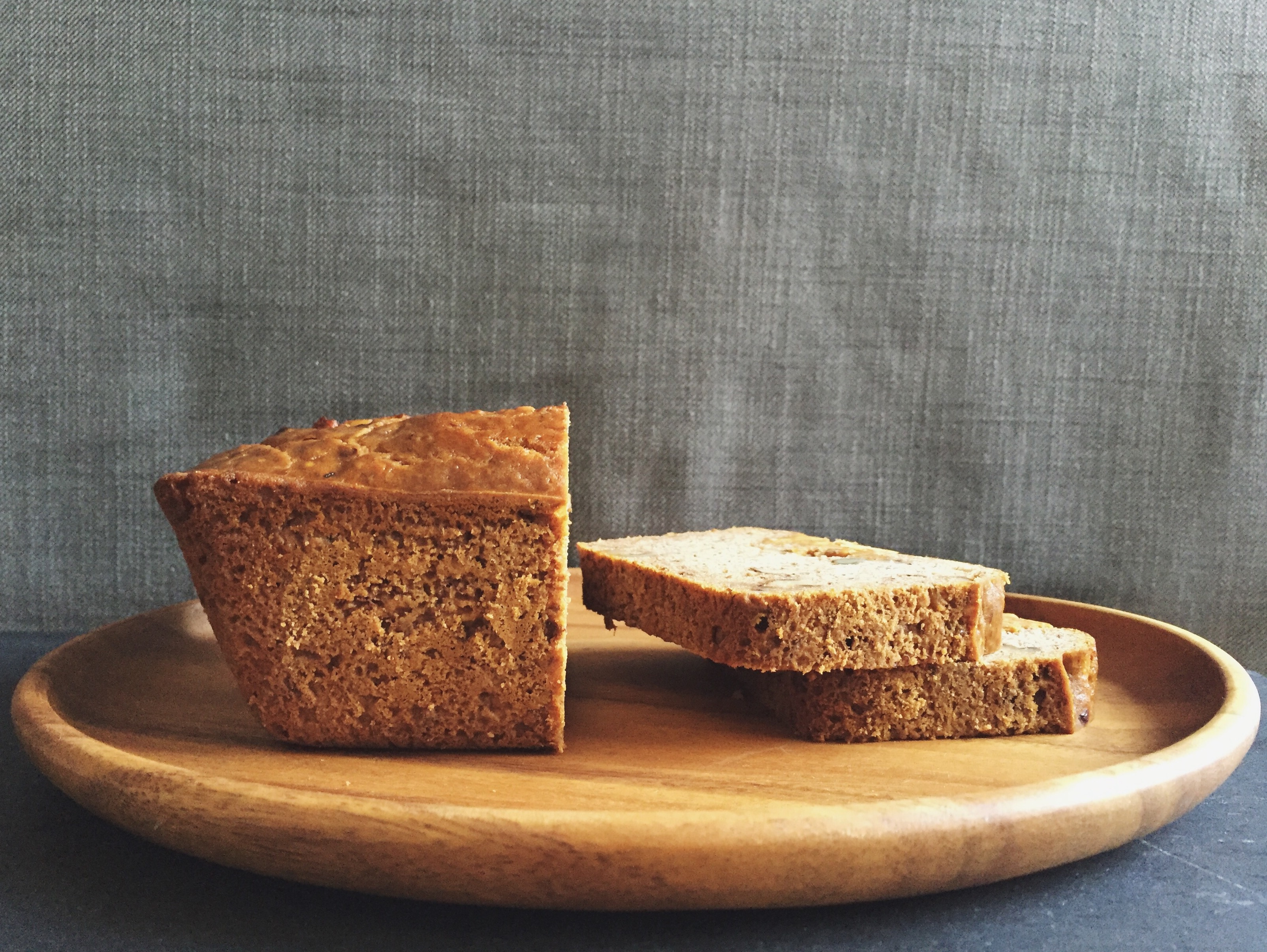 So, in this mindset, and after recently creating a recipe for a friend of mine who has some dietary restrictions (gluten-free and no refined sugar), I realized that this recipe I came up with would be great for myself and this new way of eating! It’s got no added sugar, other than honey, is moist from the applesauce, full of omega-3 with the nutty flax seed and crunchy walnuts, and has tons of flavor with the banana, cinnamon, and peanut butter. It can be made with regular flour, or easily made gluten-free by replacing the regular flour with gluten-free all-purpose flour. In my opinion, this bread is just as good as any old sugar-filled pastry!