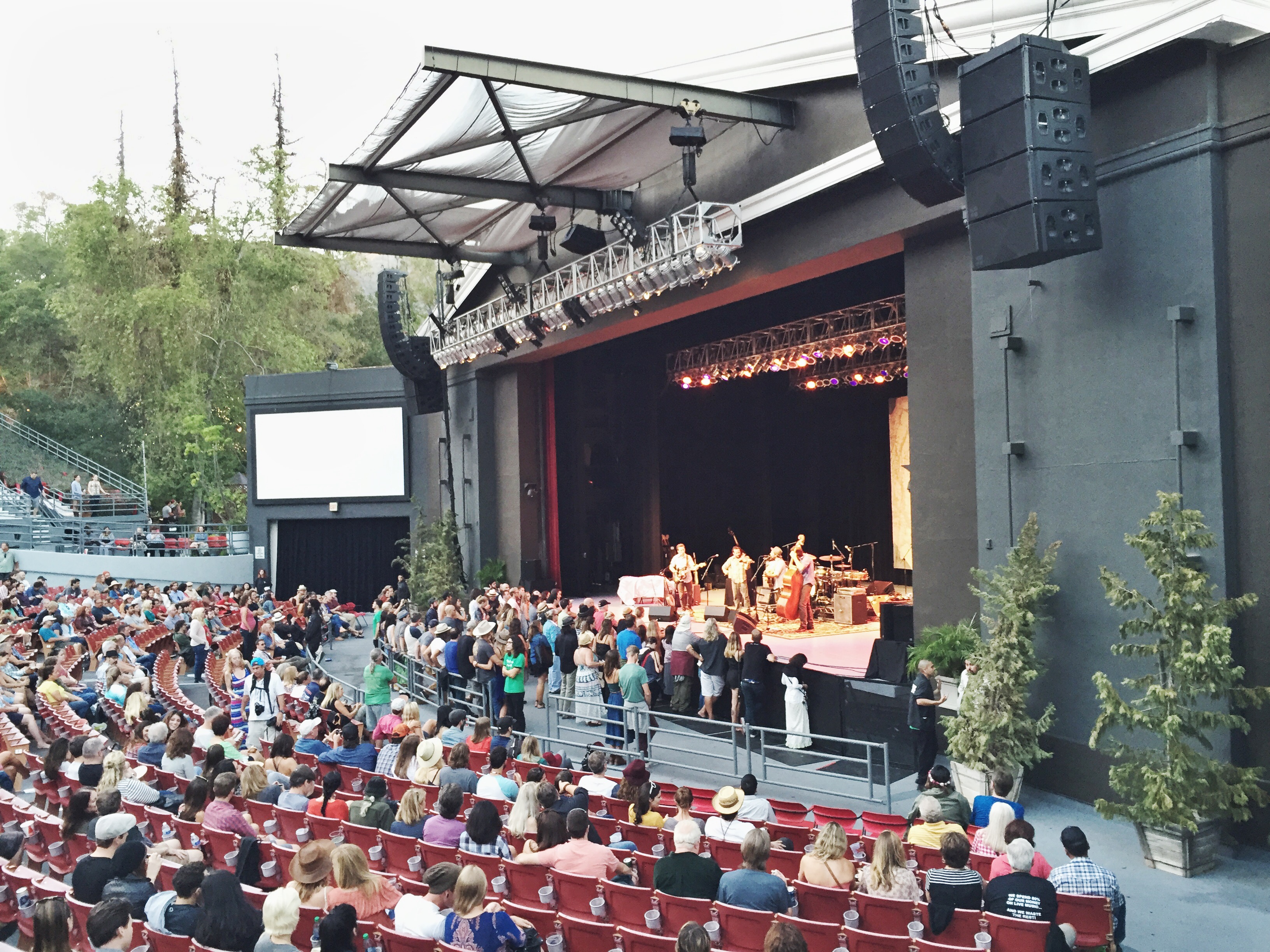 As I mentioned before, the Greek Theater is by far my favorite LA venue. It’s nestled into the side of a hill in Griffith Park, just below the observatory. The theater reminds me of a more intimate, hipper, (yet, still classy) and more woodsy Hollywood Bowl, which I also am a huge fan of (doesn’t get much classier than the Bowl…). Sparkly lights hang over the North side of the audience, pine trees border the edge of the amphitheater, and the stage resembles a very modernized theater you might see if you were in Greece. You feel like you’re no longer in LA, and almost like you’ve been transported to the mountains, where you and a bunch of like-minded friends have gathered together to sing around the campfire – only this campfire is a stage, and slightly larger…
